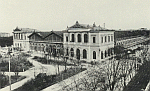 Arsenalstraße und ein Stationsgebäude "Ankunft" an einer namenlosen und